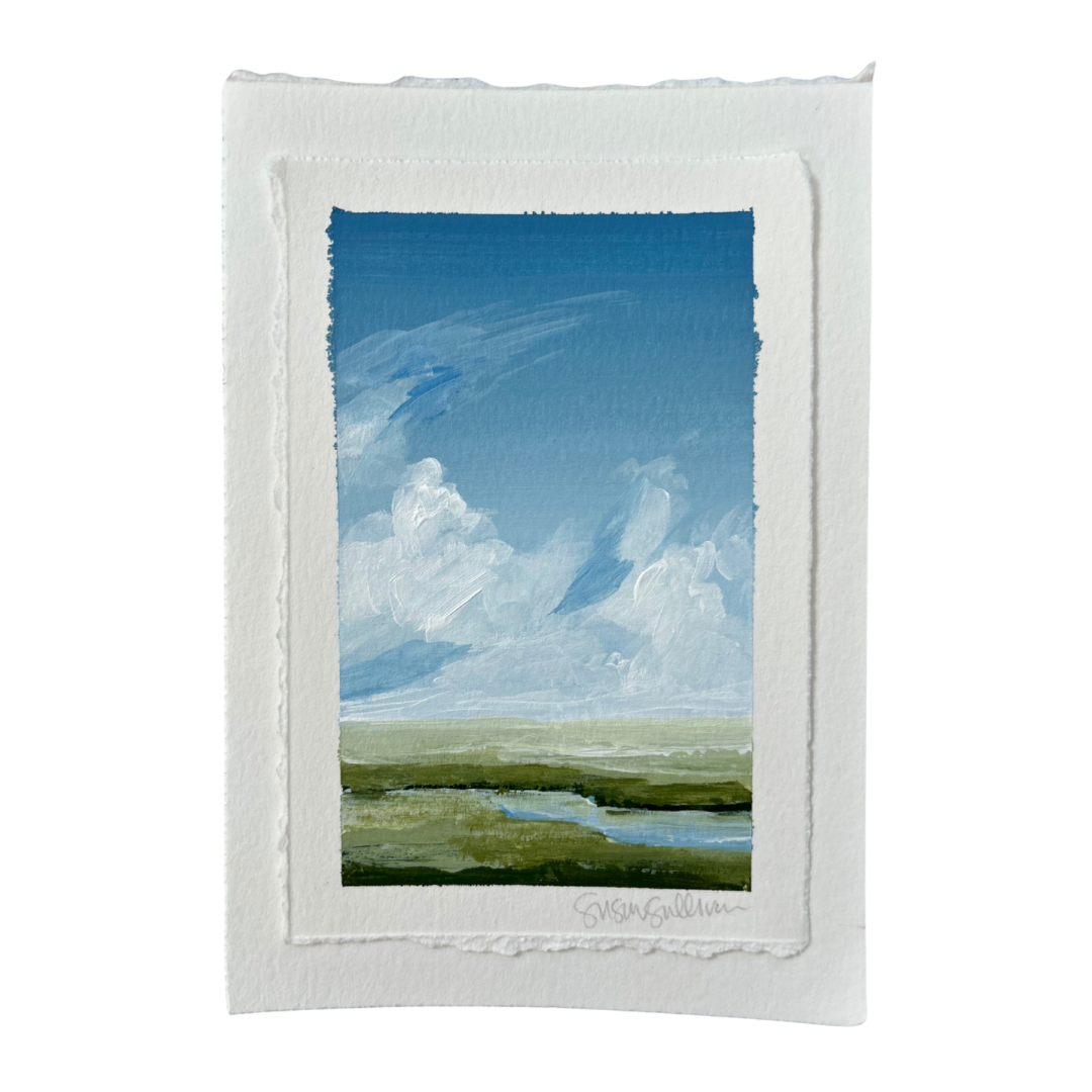 Bring the warmth of summer into your home year-round with this richly textured, painterly marsh landscape. Created with professional-grade acrylics on cold press paper, each piece features visible brushstrokes and a deckled edge for a timeless, artful finish.